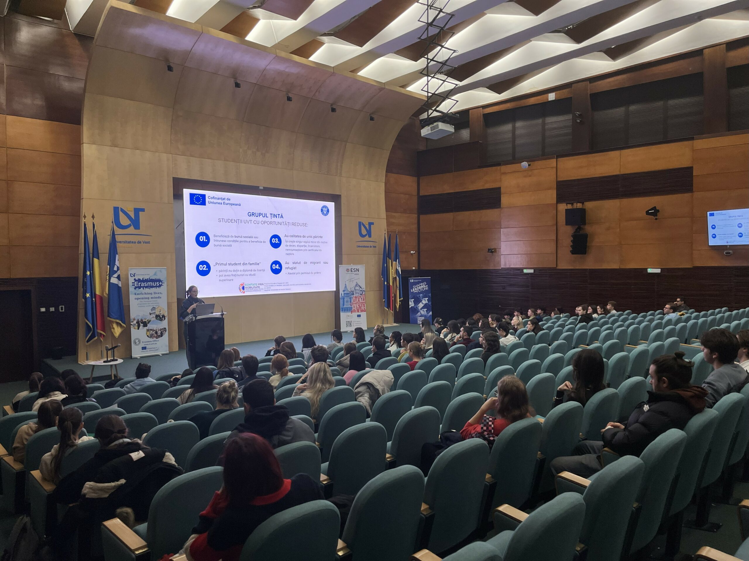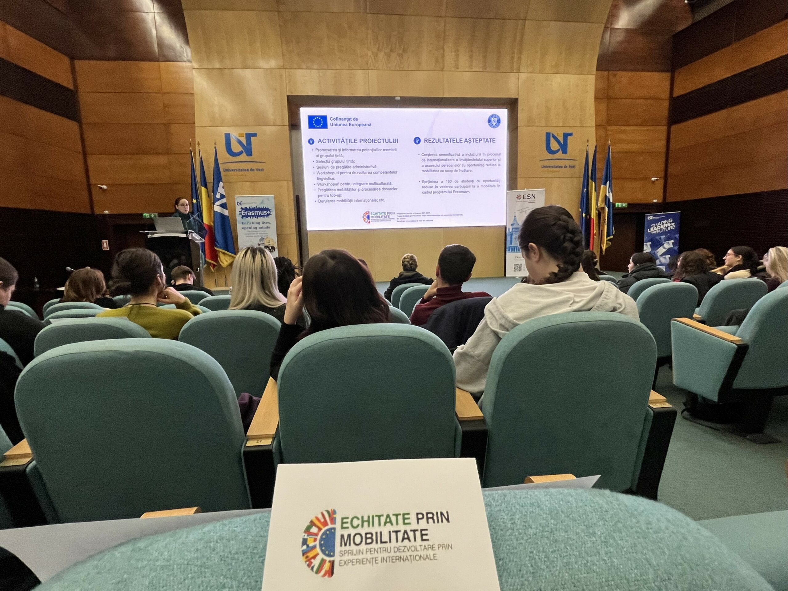Atunci Proiectul „Echitate prin Mobilitate: sprijin pentru dezvoltare prin experiențe internaționale” poate fi pentru tine! Acest proiect faciliteaza accesul echitabil și nediscriminatoriu al studenților UVT cu oportunități reduse la mobilitățile internaționale de tip Erasmus+, prin acordarea unui sprijin financiar suplimentar.