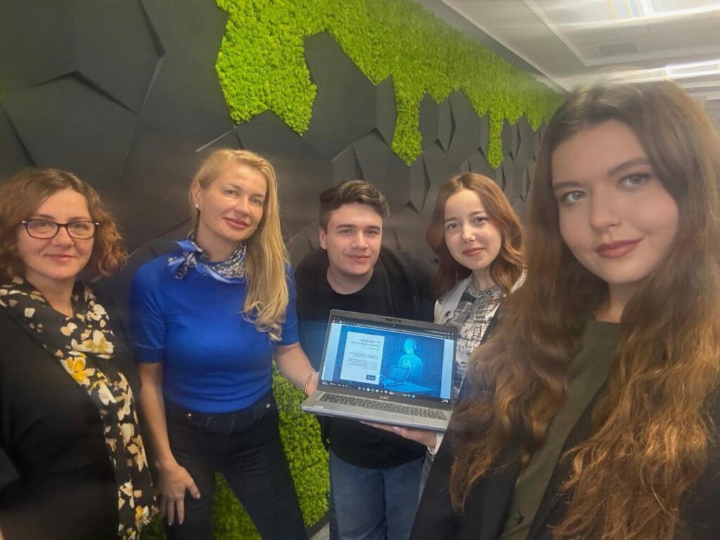 Echipa de realizare a studiului de percepție destinat evaluării perspectivelor Inteligenței Artificiale (IA) în viața personală și profesională: mentorii Flex – Diana Năstase, HR Director/Regional HRBP și Camelia Corin, HRBP, alături de studenții Alexandra Kovaci, Alisya Anghel, Raul Franțescu, de la programul de licență Sociologie, de la Facultatea de Sociologie și Psihologie a UVT.