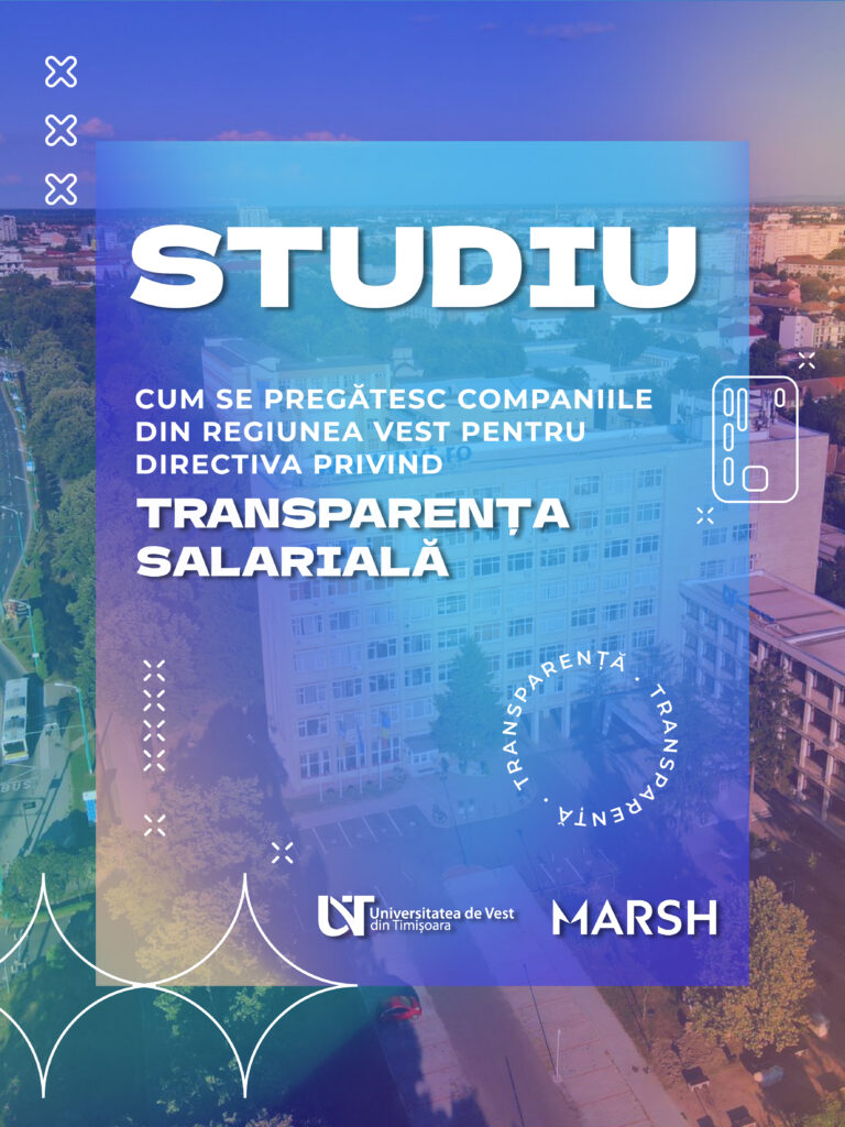 Universitatea de Vest din Timișoara (UVT), în parteneriat cu Mercer Marsh Benefits, parte a Marsh, lansează un studiu dedicat transparenței salariale, vizând organizațiile din regiunea Vest a României, în contextul implementării Directivei (UE) 2023/970 privind transparența salarială.