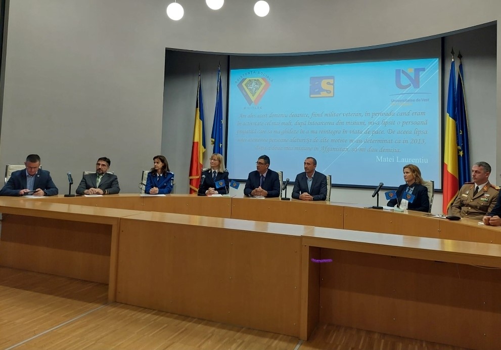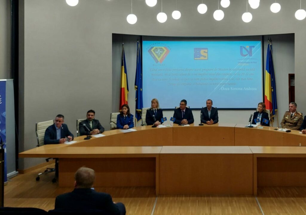 Universitatea de Vest din Timișoara (UVT), prin Departamentul de Asistență Socială din cadrul Facultății de Sociologie și Asistență Socială, a marcat, în 4 octombrie 2025, deschiderea oficială a programului de studii universitare de masterat în Asistență Socială Militară, un program educațional inovator și cu o misiune profund umană: formarea specialiștilor capabili să sprijine echilibrul psihosocial și reziliența personalului militar și a familiilor acestora.