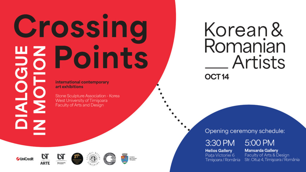 Universitatea de Vest din Timișoara (UVT), prin Facultatea de Arte și Design, în parteneriat cu Galeria Helios, are plăcerea de a anunța deschiderea expoziției internaționale „Dialogue in Motion – Crossing Points 2025. Romanian & Korean Artists”, un amplu eveniment artistic ce reunește lucrările a 80 de artiști români și coreeni.