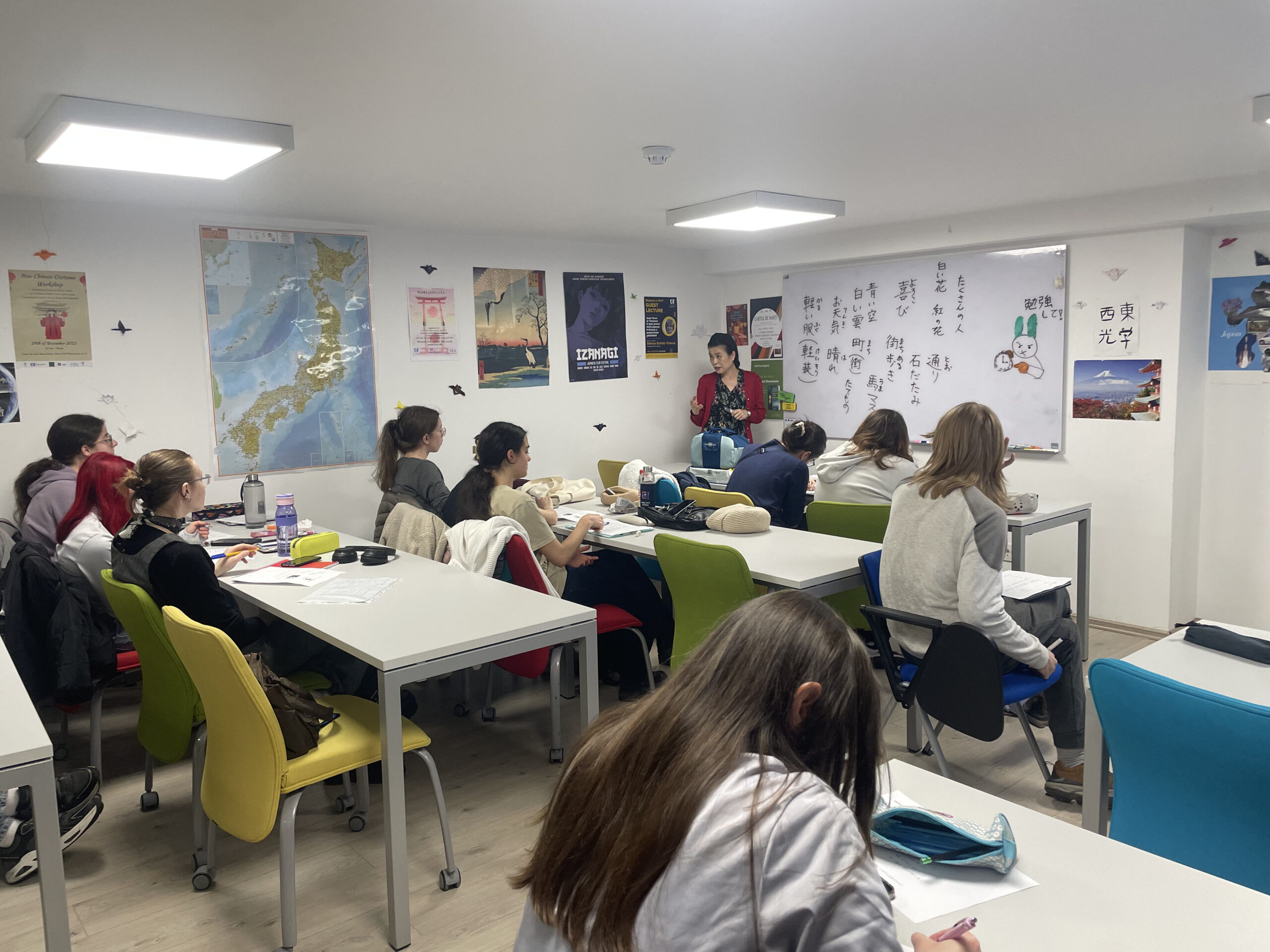 Studenții și profesorii programului au desfășurat ateliere de limbă și cultură japoneză cu numeroase activități specifice, inclusiv purtarea îmbrăcăminții tradiționale (kimono), caligrafie (kanji), origami, recital de poezie haiku despre anotimpuri și Timișoara, în creație proprie, și au interpretat scenete inspirate din viața cotidiană japoneză.