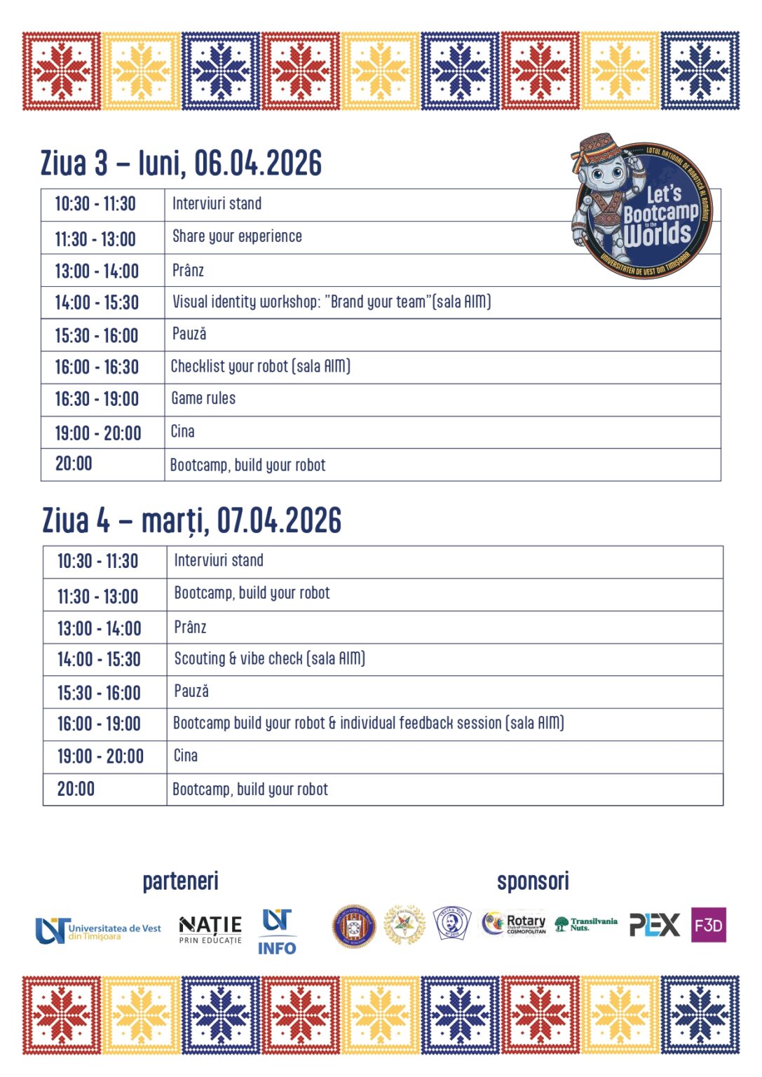 Prin organizarea „Let’s Bootcamp to the Worlds”, Universitatea de Vest din Timișoara susține excelența în educație și contribuie la dezvoltarea unei noi generații de inovatori capabili să performeze la cel mai înalt nivel internațional.
