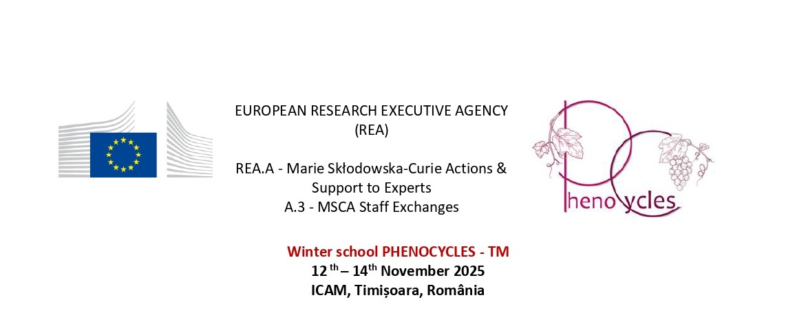 În perioada 10–14 noiembrie 2025, la ICAM, vor avea loc două evenimente în cadrul proiectului european Marie Skłodowska-Curie PHENOCYCLES GA 101131420 (http://www.phenocycles.unito.it/) Midterm Meeting & Școala de iarnă „PHENOCYCLES - TM”; agendele evenimentelor sunt atașate anuntului.