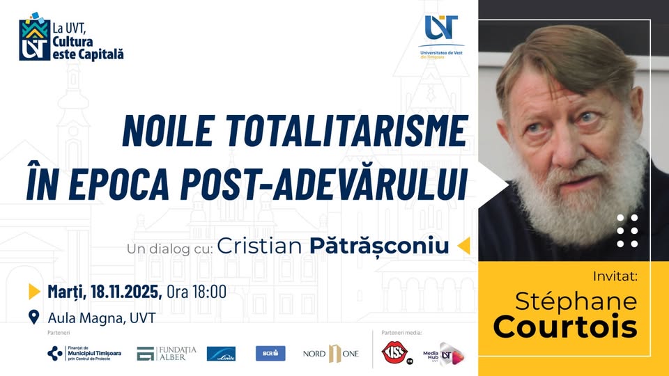 Istoricul francez Stéphane Courtois, unul dintre cei mai influenți cercetători ai comunismului european, vine la Timișoara pentru o conferință-eveniment, într-un dialog cu publicistul și scriitorul Cristian Pătrășconiu.