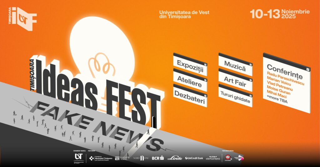 În perioada 10–13 noiembrie 2025, „Timișoara Ideas Fest” aduce laolaltă jurnaliști, creatori de conținut, cercetători, profesori și tineri, într-o serie de evenimente care vor explora mecanismele manipulării, impactul propagandei în societate și felul în care mediul digital ne modelează percepția asupra realității.